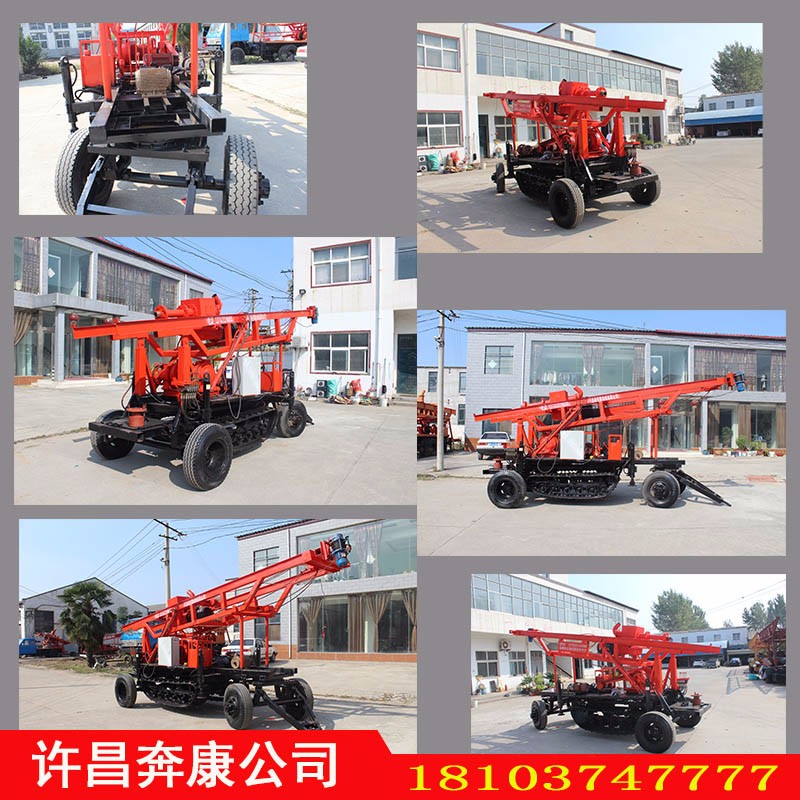 3.钻机底盘配置液压高支腿,可用于钻机 调平、装卸车,作业时也可作为辅助支撑。 该系列钻机采用履带底盘,越野性能强。同时配备橡胶轮胎,实用性高,可自走可牵引,