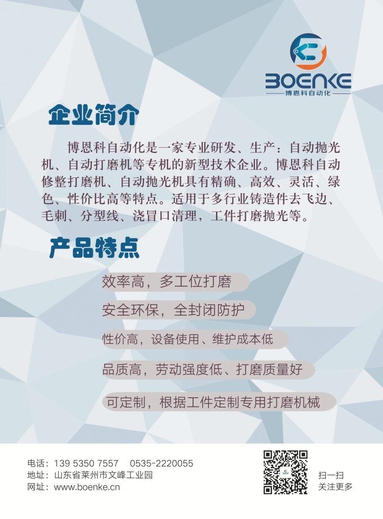 博恩科自动化是一家专业研发、生产:自动抛光机、自动打磨机等专机的新型技术企业。