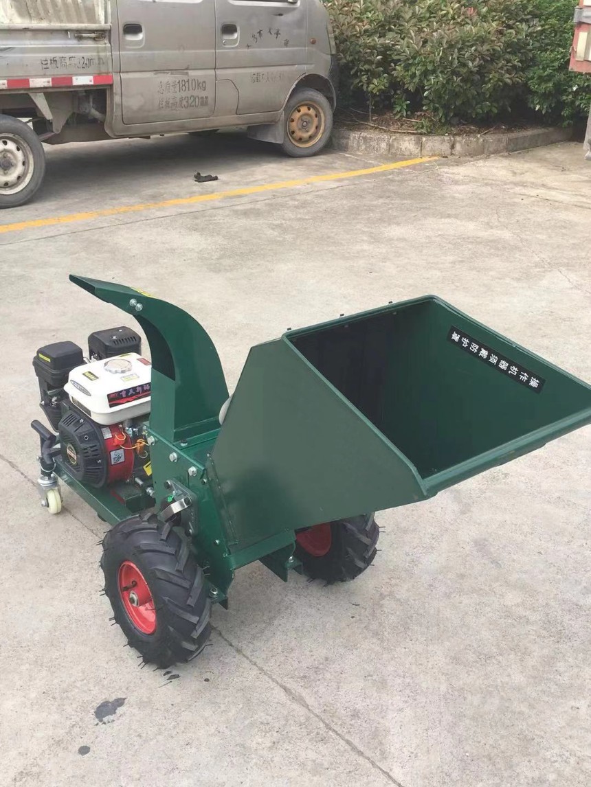 小型树枝粉碎机机型小巧,种植密集行距狭窄的园林也能轻松进入,防滑轮胎行走平稳,大马力燃油动力发动机,启动速度快动力强劲,野外作业也不用担心动力源的问题,双刃刀片粉碎速度快,使用寿命长,直径10公分的树枝也能轻松切片。