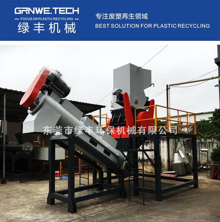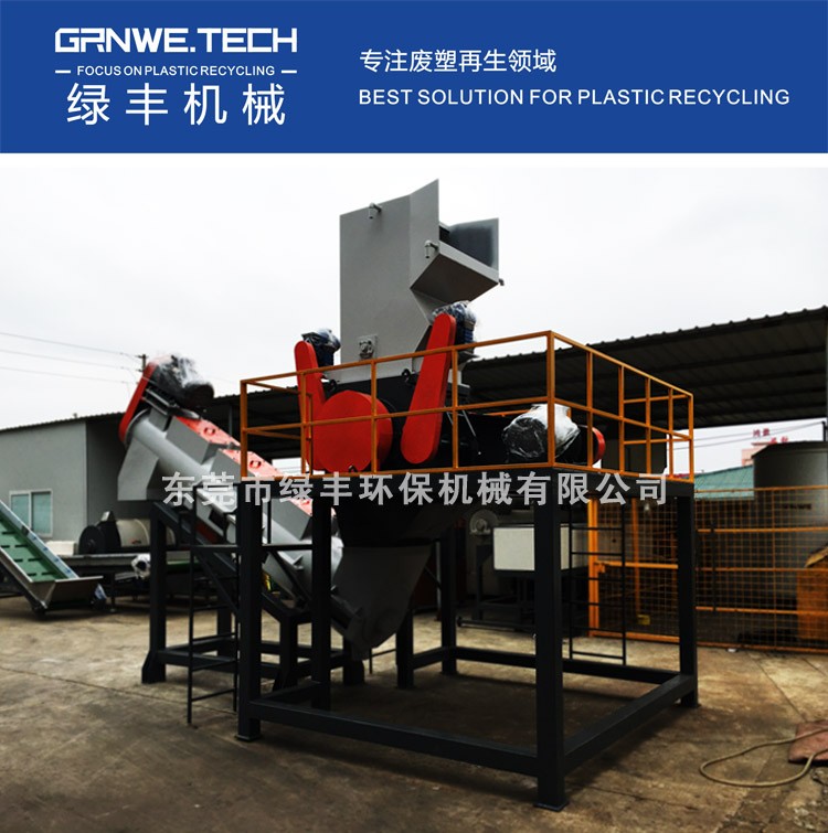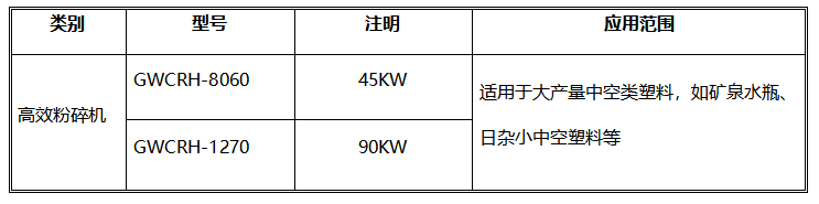 GWCRH系列高效型粉碎机是绿丰机械针对PET瓶砖、牛奶瓶瓶砖等压缩瓶、罐类塑料而研发设计的专用粉碎设备。主要用于大型PET长丝级瓶片清洗线配套或大产能撕碎机后端的细碎配套之用。针对PET瓶砖料结合成品片径尺寸的不同需求,GWCRH系列粉碎机单机产能从2000kg/h至5000kg/每小时不等。GWCRH系列粉碎机粉碎室主体及主轴等部分均采用四轴CNC加工中心一体成型加工工艺,整机焊接比例不足20%,在刀片磨损允许范围内,单机可支持7?24小时不停机连续作业,且性能持久稳定。