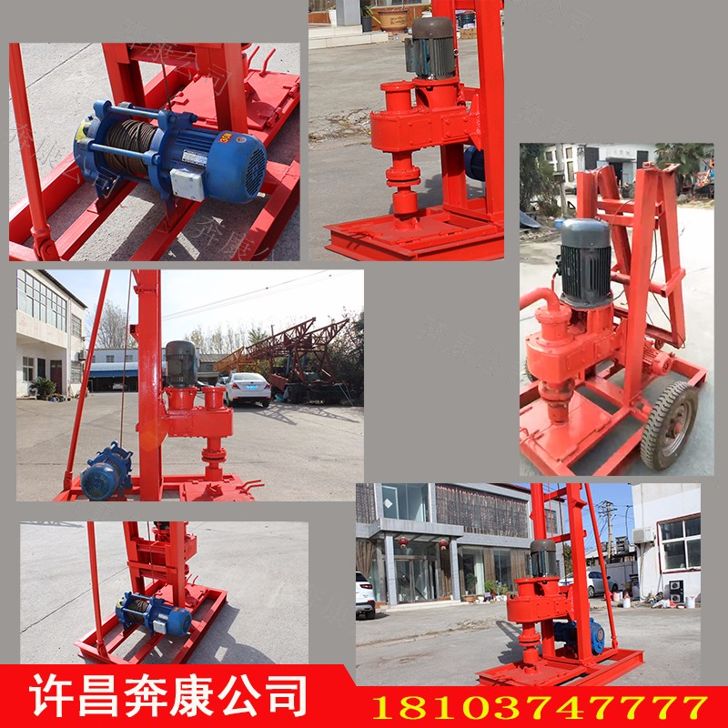 1.钻井机工作高度3米,不工作高度1.6米,适合任何地点开钻井。本钻井机标准配置由主钻机5.5千瓦。