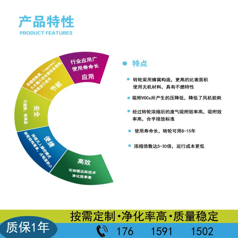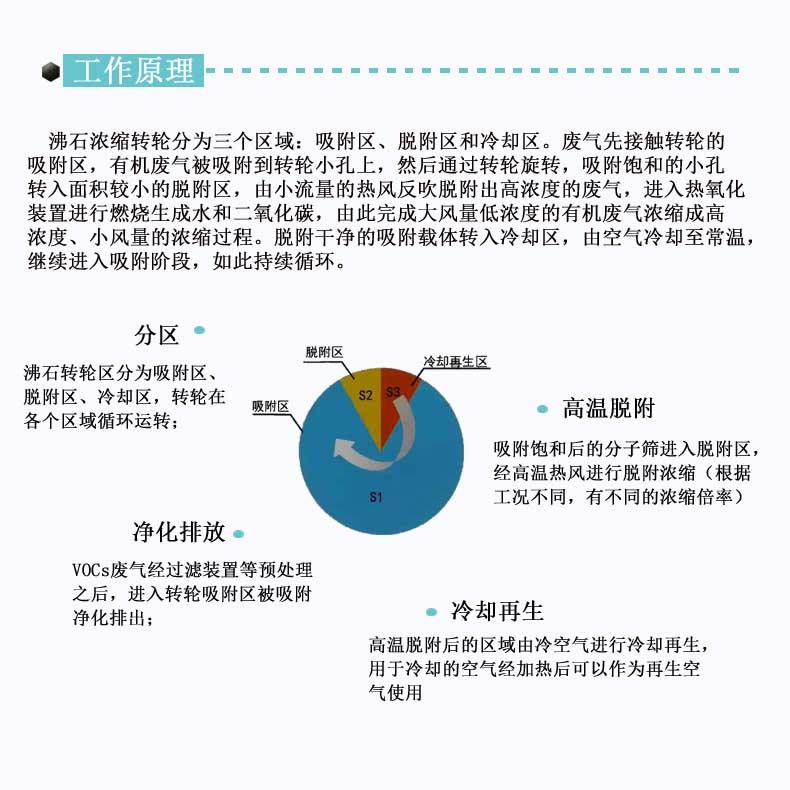 德州新睿达创新研发的沸石浓缩转轮,以无机纤维为基材,转轮表面涂覆疏水性沸石做吸附剂,制成的蜂窝状的转轮。沸石转轮作为处理VOCs的核心材料,可有效吸附尾气中的VOCs有机废气,对废气的净化效率能够达到95%以上, 运行稳定性高,吸附材料为无机硅酸盐,无安全隐患。