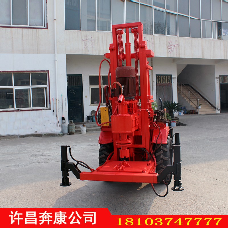 3.钻机底盘配置液压高支腿,可用于钻机调平、装卸车,作业时也可作为辅助支撑。该系列钻机采用拖拉机作为底盘,可以直接开着去工地,行走速度和越野性能都不错。