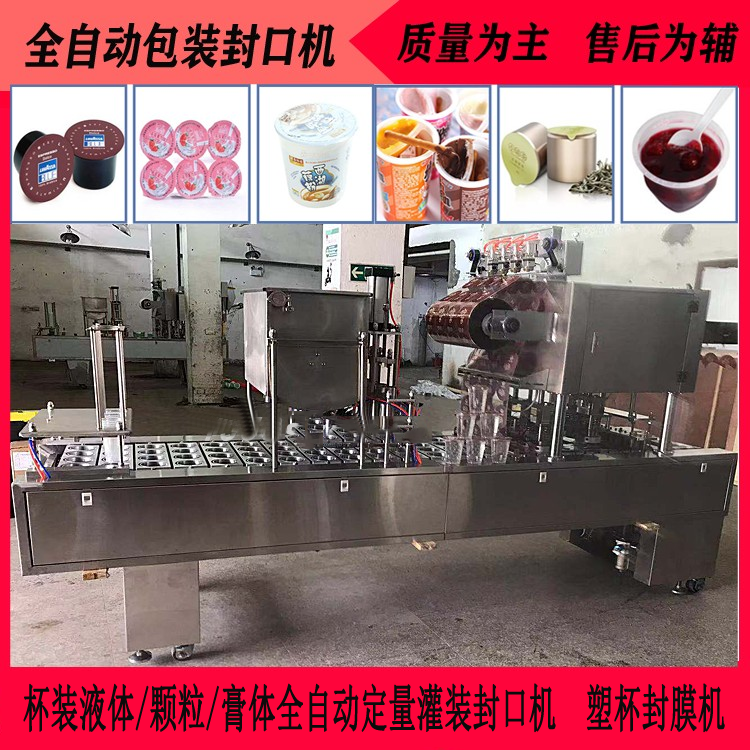 适用于各种杯装酸奶、果冻、饮料等产品的生产,能自动完成塑(纸)杯的自动落杯、自动定量灌装、自动卷膜封切、自动两道热封等功能。整机采用日本欧母龙可编程逻辑控制器、台湾气动控制元件、智能数显温度控制系统,具有封口强度高,密封性好,故障率低等特点,是企业自动化生产的产品。