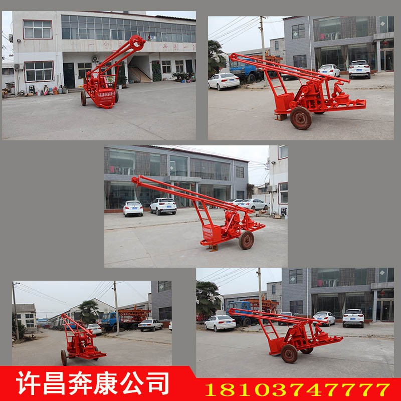 3、钻机底盘配有轮子,移动性强,便于牵引。