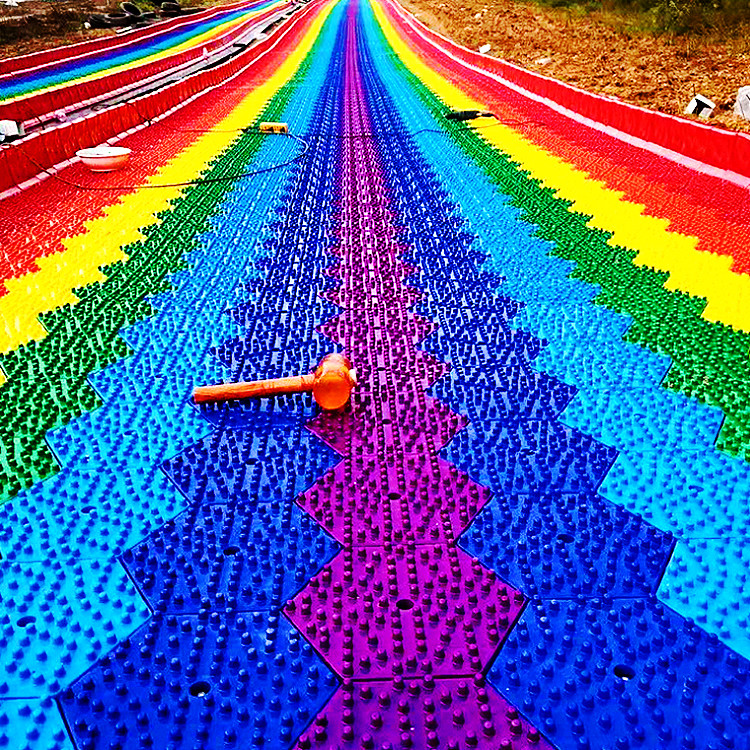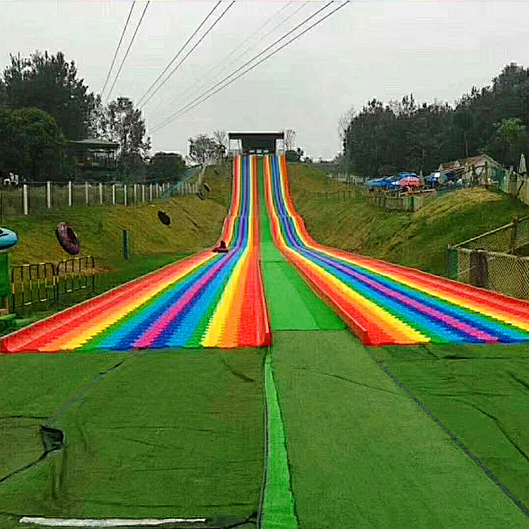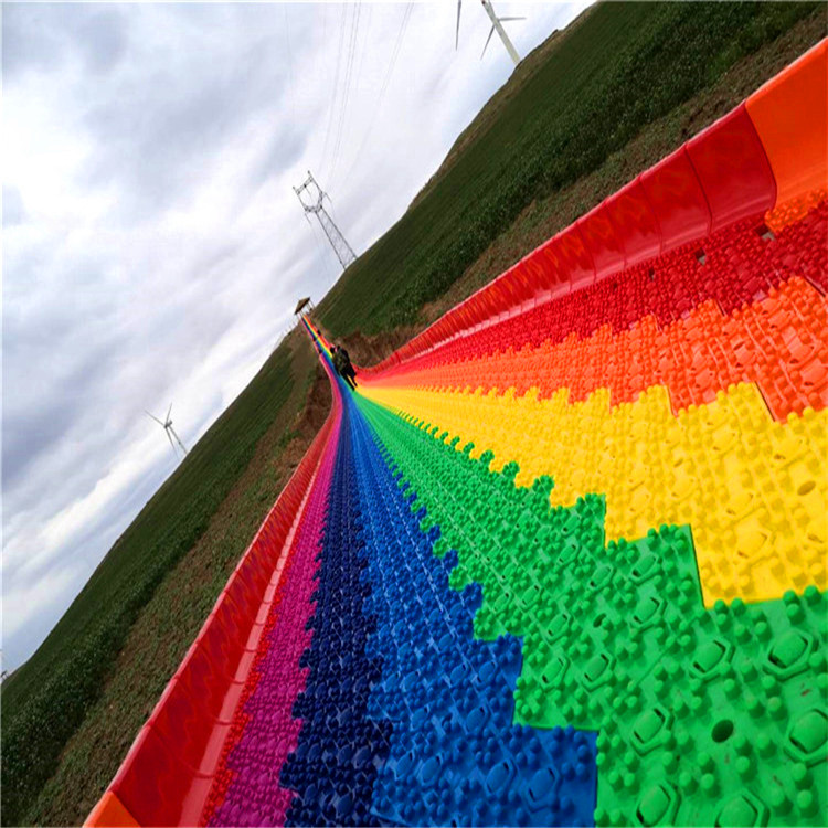 在形成结构、摩擦系数、 防护、耐寒耐晒、仿真效果方面都有了较大的这种互动保证了设备的二次传播和口碑,独乐乐不如众乐乐,一起在互动中获得快乐是游乐项目很重要的一个功能。彩虹滑道3.4米的双道滑行设计是为了满足此类需求而设。色彩炫丽的滑道,像一道彩虹挂在山坡,从长长的滑道飞驰而下。整个身体仿佛从彩虹中穿过!这是一条欢乐的滑道、  的滑道。彩虹滑道足够漂亮,七种色彩组成的七彩滑道宛若彩虹一般挂在那里!你说美不美?对于彩虹,人们天生喜欢,这也是为何每次夏季雨天过后,朋友圈晒彩虹的大有人在!