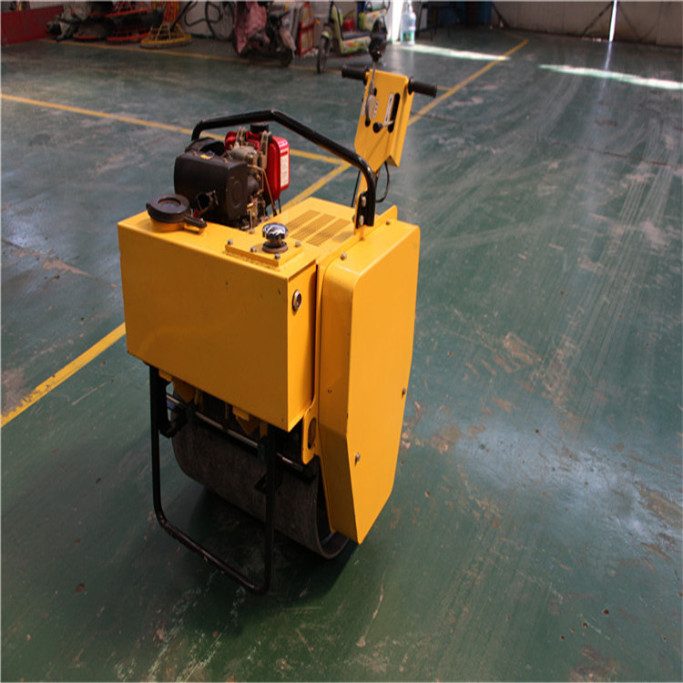 1、手扶式压路机驱动轮外侧停放在道路右侧边线位置,车体中心线与道路中心线平衡。
