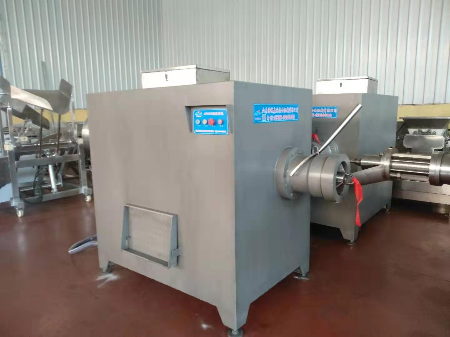 3、烤肠的加工使用低温肉制品做出来的口感更好,所以不需要解冻的250冻肉绞肉机是极好的选择。出来的肉粒温度低,特别适合下一步斩拌机加工。