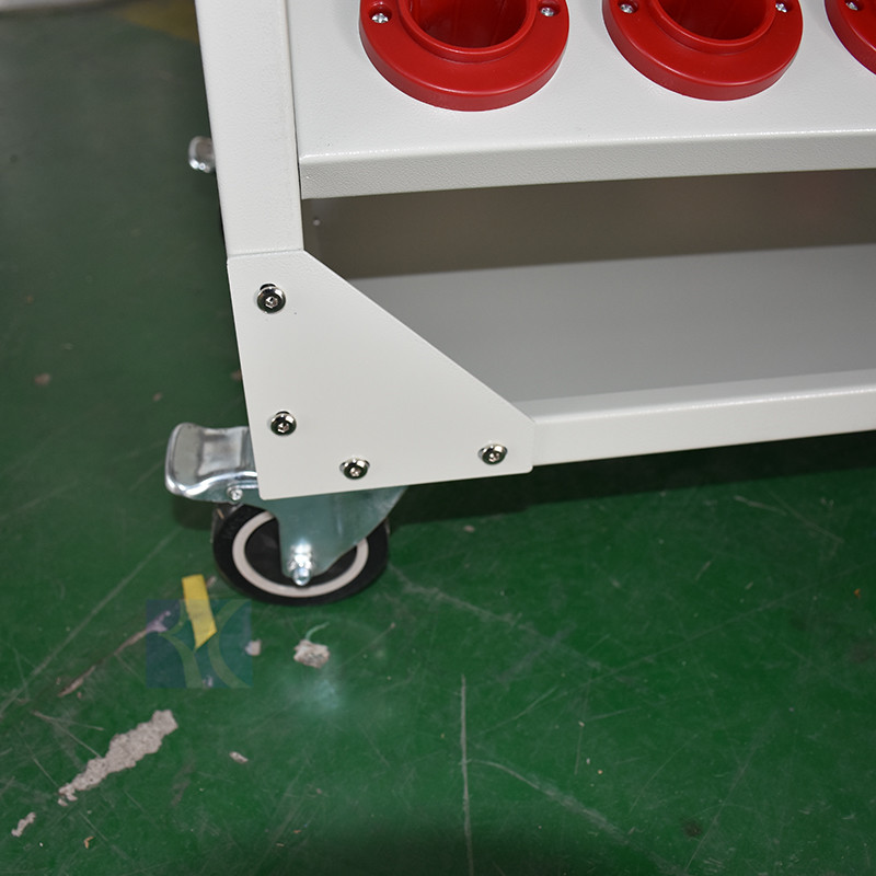 配置:标配3mm黑色防滑胶垫4寸脚轮,两定两万向带刹车,共配5个刀套条,整体承重200kg。