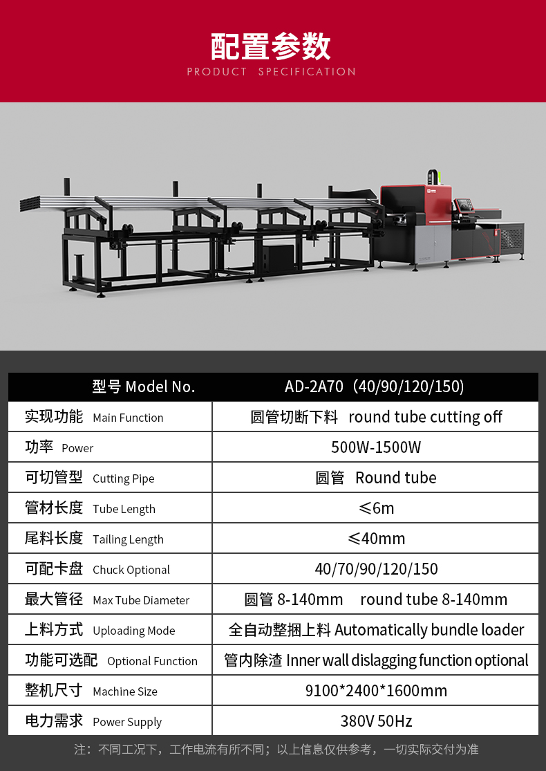 标配伺服挡料系统,可根据需求进行自动定义管材长度(可定义管材长度0-1000mm)