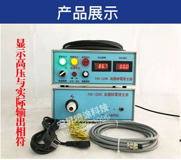 120KV 高压静电发生器的稳定性强,性价比高,作业安全。高压静电发生器采用内置式自动保护电路设计,高压静电发生器有效防止由于放电距离贴近产生强火花现象;当高压静电输出短路(工人不慎碰触或放电距离过近),使放电电流达到设定保护值时机器会自动保护停机,(需要重启开机才能恢复工作)有效地确保设备运行及作业安全。高压静电发生器高压输出无级调节,可满足各种作业所需要的工作电压;设备可连续运行,使用寿命长等优点;可以单独安装使用,适合不同品牌DISK圆盘型静电喷漆设备及高压静电设备使用。