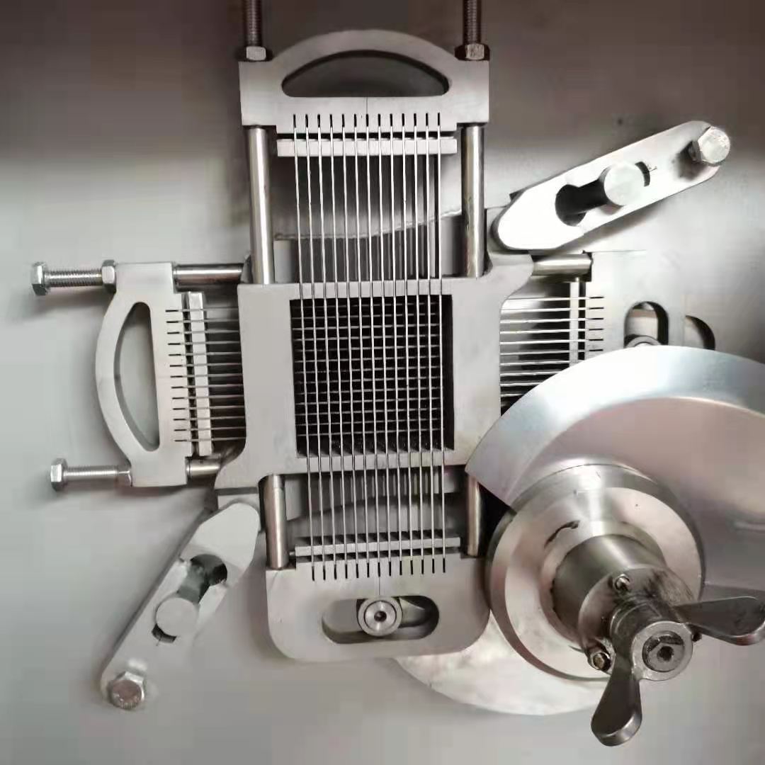春秋肉丁机采用全新标准设计、机壳、切割刀栅均采用优质不锈钢材料制成,切刀采用双面切割,工作效率高,是肉食品加工中的必备设备。小型肉丁机尤其适用于加工牛肉粒、宫保肉丁、水饺、包子馅肉丁、香肠肉丁等食品,一次成型,无下脚料,切割标准。
