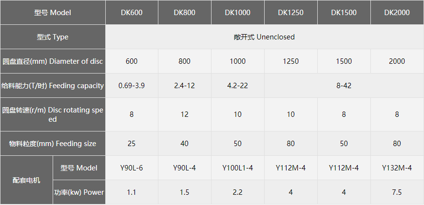 圆盘给料机为容积式计量的给料设备,它能均匀、连续地将物料喂送到下一道工序,并且能够承受较大的仓压。
