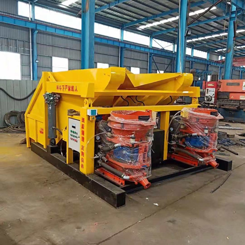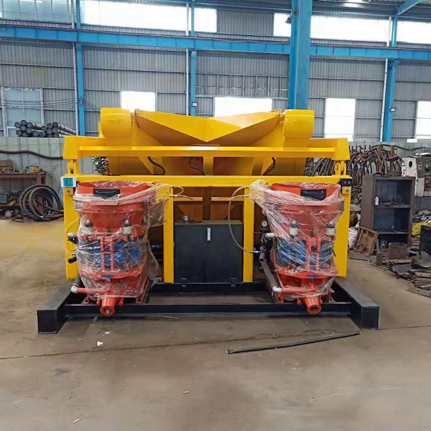 吊装式一拖二单斗自动上料喷浆机组 是根据国家基础设施建设的需要而开发的一种新产品。吊装喷浆机组可同时供两台喷浆机工作,喷浆机的型号规格可任意选择。本产品可广泛适用于大垮度遂道施工,具有高效、人性化的特点,取代了传统的人工上料施工模式,最大限度的节省了劳动力,避免了人工上料杨尘对施工人员的伤害,同时避免了人工上料时未硬化工作面上物料残留造成的浪费。