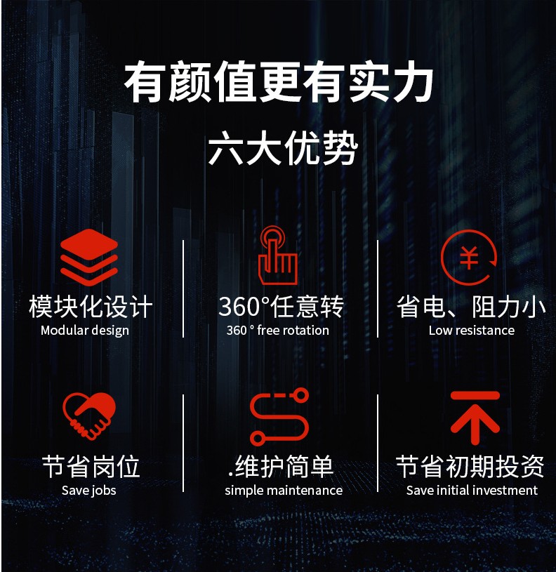 根据功能不同,分化成受料模块、转向模块、改向模块,形成通用化,有利于运输、安装。