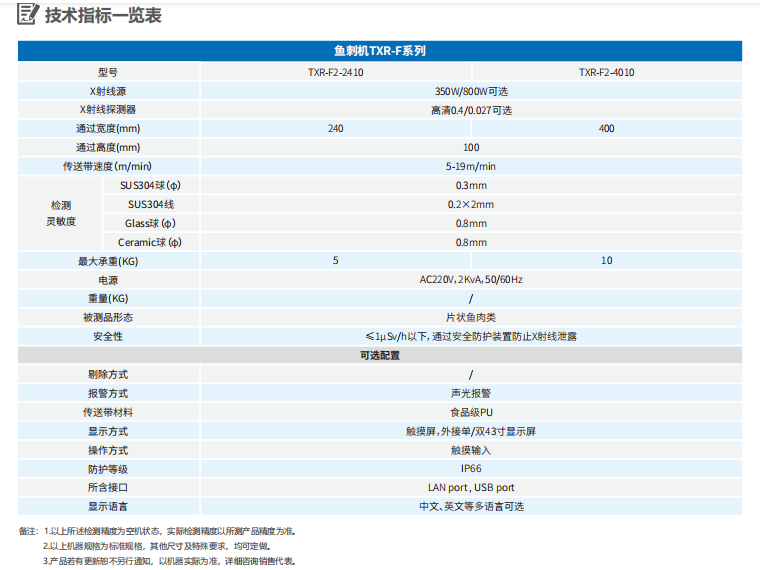 ●上海太易鱼肉鱼刺X光异物检测机不仅可对鱼肉中的异物进行检测,还可配合外接高清显示屏,进行人工排查,针对鱼肉加工中残留的危险刺、细刺的在线检测。设备具有超高分辨率图像,鱼刺清晰可见。
