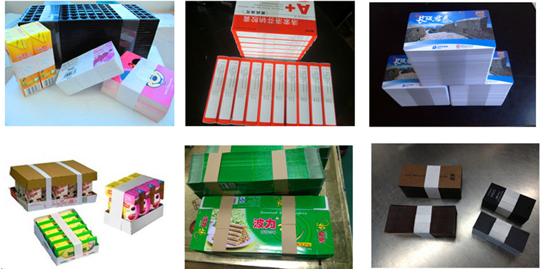 HXB-2200A自动高速束带机可对纸钞、单证、书籍、报刊、药盒、卡片、说明书和日用小文具等物件进行自动捆扎。 本机适用于制药、食品、印刷、金融、IT、日用化工等多种行业。 包装耗材: 纸带,OPP膜带 ,牛皮纸