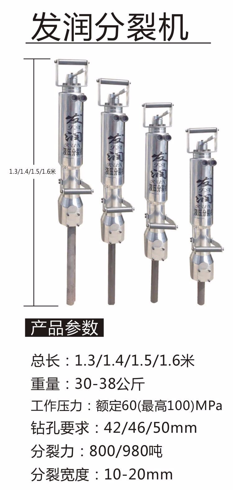您用我们的产品现场效果好、用的放心、用的舒心就是我们所一直所服务下去的动力,如果您用的好了,请帮我们推广一下,我公司必将感谢您对我们的支持!开采岩石石头硬,不能,钩机、挖机、风镐、剂破碎效率低。欢迎您选择发润牌岩石劈裂机,相信我们的产品会对您有所帮助!