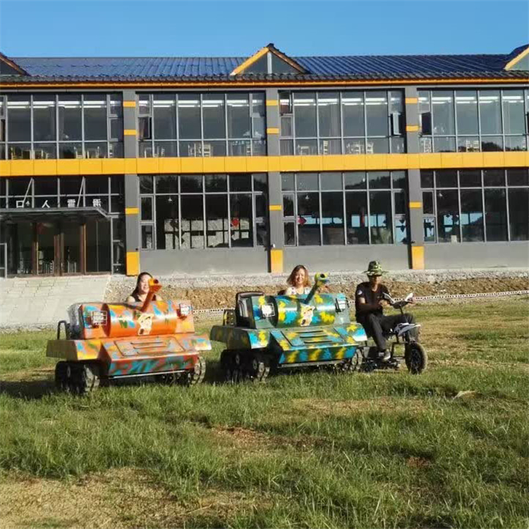 游乐坦克产品特点:1、模拟真实坦克外形进行仿制,外形更加酷炫;2、用履带行驶接触地面,让驾驶更平稳;3、油电两种驱动行驶,动力更加持续稳定;4、操作方法简单,更容易让游客掌握;5、分单人、双人乘坐行驶,更能满足游客各种需求;6、动力强劲,可爬坡。