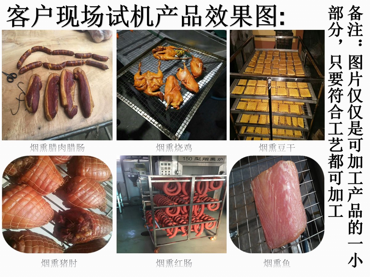 多功能烟熏箱,烟熏炉具有、干燥、烘干、烟熏、蒸等功能,适合香肠、火腿、禽类、烟熏腊肠设备鱼制品等多种产品的加工。根据需要,可以加装制冷系统,食品烟熏机实现冷熏功能。