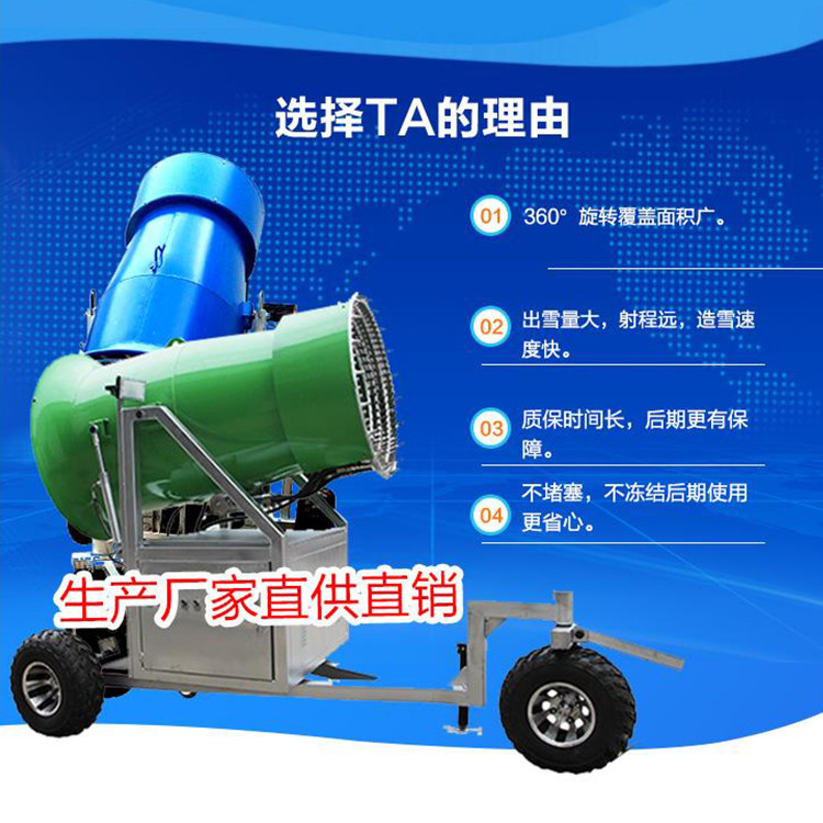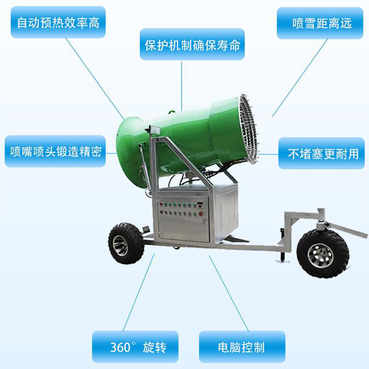 2.出雪量大:Z大造雪量可以每小时8立方米。其大功率的轴流风机,使地造雪距离远,覆盖面积大。