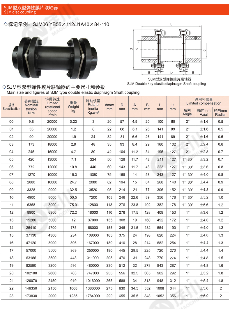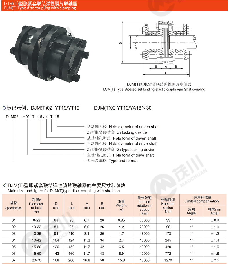 重量轻,适合高速运转场合;轴套连接方式采用胀套无间隙联结,可用于伺服定位系统。