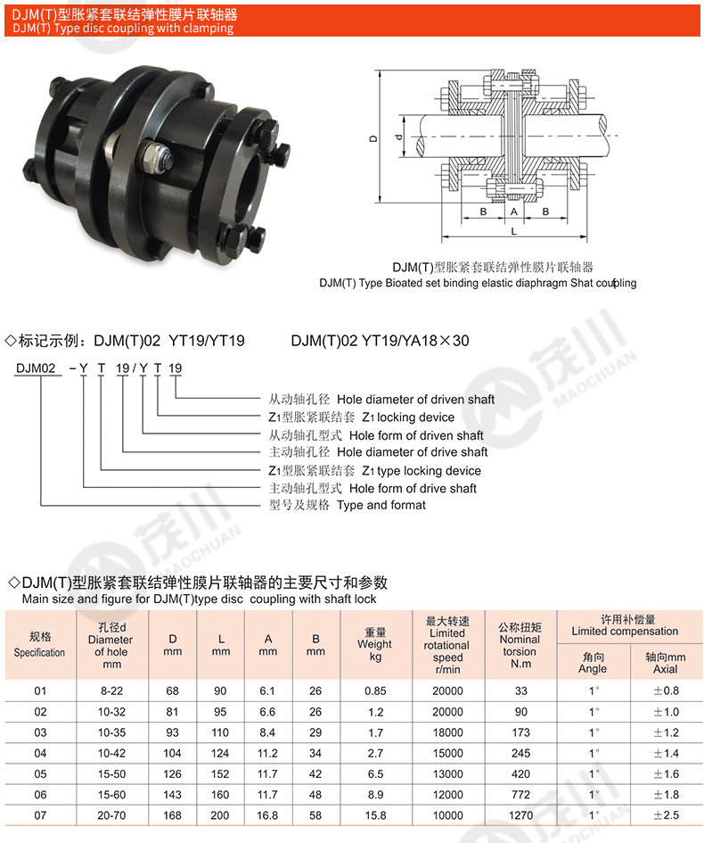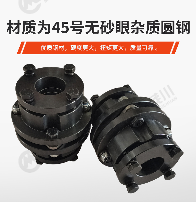 特点:偏心允许范围大,拆装迅速。无噪音,磨损,无滑动、摩擦转动部件,可降低能量损耗;重量轻,适合高速运转场合;轴套连接方式采用胀套无间隙联结,可用于伺服定位系统。中间的弹性元件采用进口不锈钢材质,强度高,使用寿命长,并可以在腐蚀环境中使用。