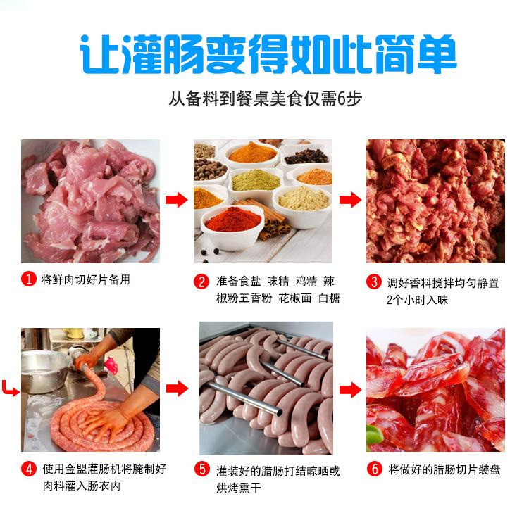 3.设备整体结构合理、全自动香肠灌肠机造型美观、性能稳定、操作简单、维修方便台湾烤肠,台式烤肠,脆皮肠,早餐肠,鸡肉肠,欧式烤肠,中式腊肠等近几年,随着人们物质生活水平的提高,饭馆、餐馆的遍地开花,人们外出用餐的普遍化,直接带动了相关的需求,为灌肠机行业提供了宝贵的发展机遇,呈现出广阔的市场前景,销售也逐渐呈稳定增长趋势。