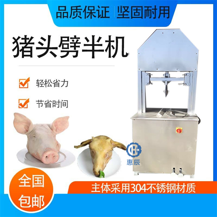 羊头深加工设备劈半机 不锈钢牛羊头开半机 液压式猪脸劈头机视频 该设备劈刀采用工具钢制造、不容易损坏,该劈半机采用二相电生产(三相电也可以),配备的有3kw电机、比较省电。