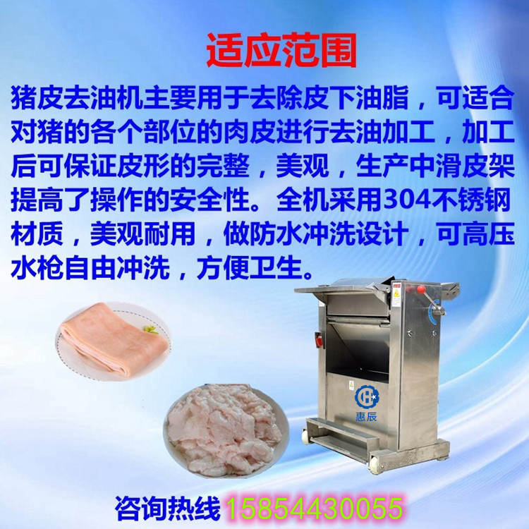 皮冻加工设备去油机 小型猪皮刮油机价格 实验用碎猪皮刮脂机 现今市场猪皮去油的方法只有人工刮油和使用猪肉去皮机去油两种方式,但人工去油耗时耗力且效果不理想,使用猪肉去皮机只适用于猪脊背皮去油,去油效果比人工去油稍好,但仍有去不净油脂和夹皮导致皮破损现象。