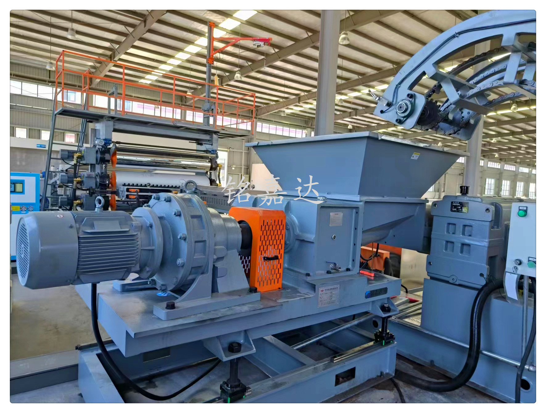 锥形双螺杆强制喂料机:采用特制的自结啮合式螺杆,电机功率:11kw,调速系统采用 “东元”变频调速器; 进行喂料,具有向前连续输送物料发挥流水线加工的优势,具有连续输送物料和自动清洁的功能等优点。物料经由喂料装置的螺旋咬住,连续均量的供给主机吞进,喂料螺杆:双螺杆强制下料,氮化镀铬处理,表面光洁度高,螺杆运转方向为异向旋转;调速系统可调节控制喂料量的大小,喂料体:带夹层,采用电加热,内表面抛光、镀铬处理,坚固耐用; 从而替代人工喂料操作,避免人工喂料的不均、 易出安全事故的情况,达到节约的目的,是高填充,难填充场合所常选用的喂料设备装置。