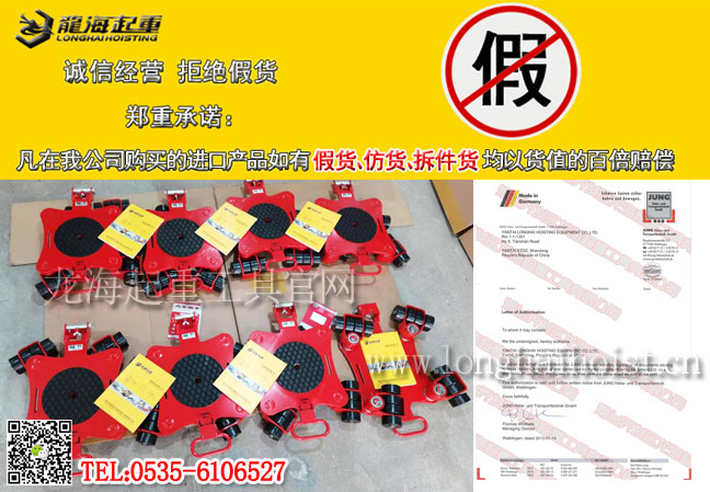 龙海起重德国JUNG万向搬运小坦克代理商,郑重承诺:厂家货源:原装进口,如有仿货以产品货值百倍赔偿!可提供授权文件!
