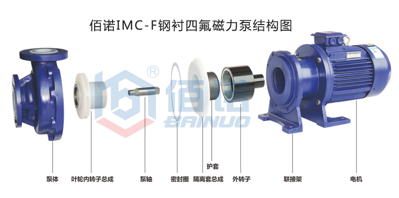 IMC衬氟磁力泵是上海佰诺泵阀有限公司引进新型技术开发出的新一代产品,采用F46或PFA材料模压一次成型,该材料耐腐蚀性强、机械强度高、不老化无毒素分解等优点。