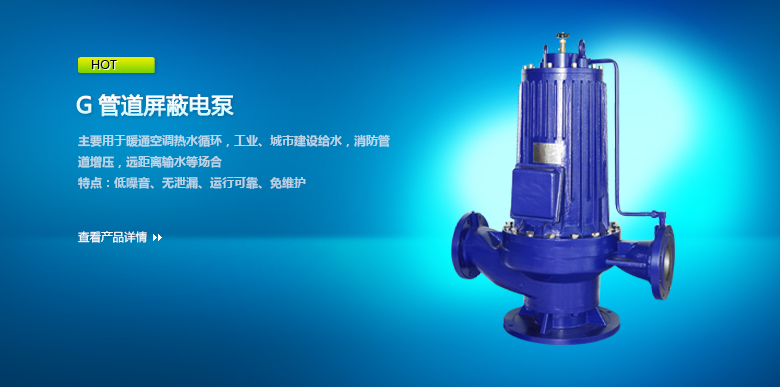 G系列低噪音管道屏蔽电泵采用全封闭、无机械密封的新型结构。定转子采用不锈钢套分别屏蔽密封,输送液体可进入电机内部冷却,从而解决了普通管道电泵因使用机械密封而导致输送介质泄漏、污染环境、运行可靠性差、维护困难等问题。转动部分则采用石磨轴承支承、输送介质润滑,是低噪音绿色环保型升级换代产品。由于其低噪音、无泄漏、运行可靠、免维护等优点深得用户信赖。 G系列屏蔽电泵主要用于暖通空调冷热水循环,工业、城市建筑给水,消防管道增压,远距离输水等场合。