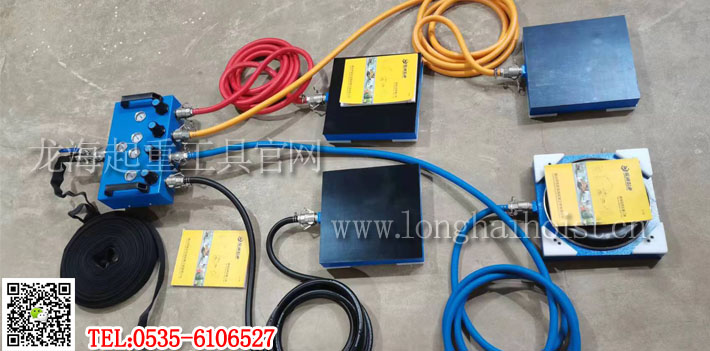 烟台开发区龙海起重工具有限公司销售龙升品牌气垫搬运车,气垫搬运车是通过清洁空气为动力源轻松搬运重物的工具,由控制器、承载面板(铝合金材质)、气囊、主副气管等组成。适用的地面有混凝土地坪地面,不锈钢地面,涂层地坪地面如聚氨酯、环氧树脂地面等。