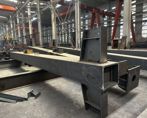 箱型柱,由于他的形状像一个大箱子,因此称为箱型柱,一般用作梁或者柱子使用。具体的形状还要按照图纸来设计,有的形如“#”,四个边都会出来;有的是“口”字形的;有的是半封口的;有的会在柱子里加一些板筋等。箱型柱的工艺一般为埋弧焊接。