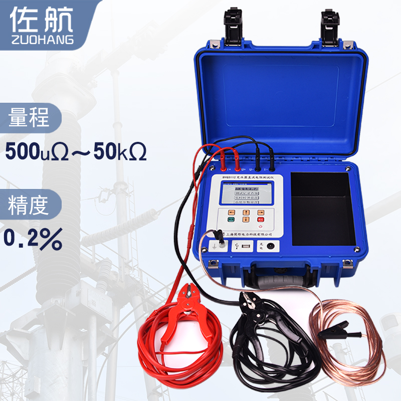 佐航 BYQ3112 变压器直流电阻测试仪是一款创新型产品,内置大容量锂电池,仪器与测试线采用机线一体设计,产品体积小巧,便于携带。 产品不仅适合变压器、互感器、电抗器等感性试品的测量, 而且适合铜排、导线、开关触点等阻性试品的测量,仪表测试速度快、准确度高。
