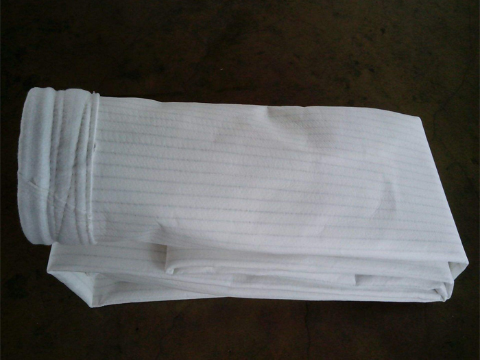 防静电除尘布袋材质为涤纶常温除尘布袋所用原料大多为涤纶大化短纤维,纤维之间交错缠绕,滤料的孔隙密度大、孔径小、微孔分布均匀,具有良好的过滤性能,涤纶针刺毡是布袋除尘器中的主力滤料,是采用非织造针刺工艺,将涤纶短纤维梳理铺网在纤维交错排列、空隙分布均匀的细纤维布上后针刺成毡。覆膜涤纶针刺毡除尘布袋强度大、弹性回复性能好、织物尺寸稳定、能好、空隙率大,透气性能较好,使用寿命长,除尘效果好,常温(低于130℃)下有良好的力学性能和性。