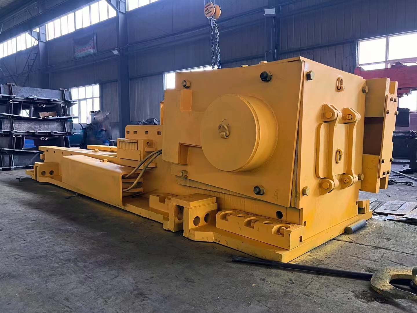 用来安装、支撑传动装置、链轮、舌板、拔链器等部件的架体,两侧均可安装减速器,机头架安装在推移部上,传动装置安装在采空侧。机头架通过与过渡槽、中部槽等连接,实现长度上的延伸,通过机头架上减速机、电机等动力提供,实现源源不断的煤炭运输。