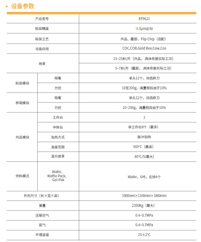 共晶机贴片机是微波模块、红外传感器、微电子机械系统(MEMS)、多芯片模块、堆叠式组装、混合器件和光电子封装等制造商的理想产品。能够为先进封装提供灵活而多样的封装能力,而且不会降低生产效率、质量和可靠性。EF8621贴片机能为先进封装提供灵活而多样的封装能力。