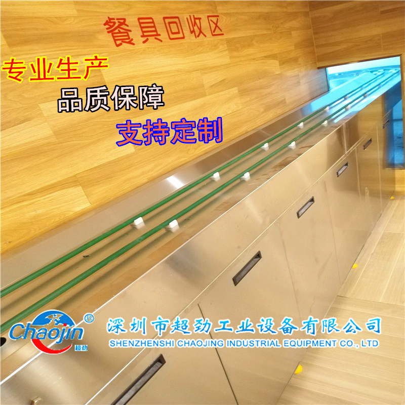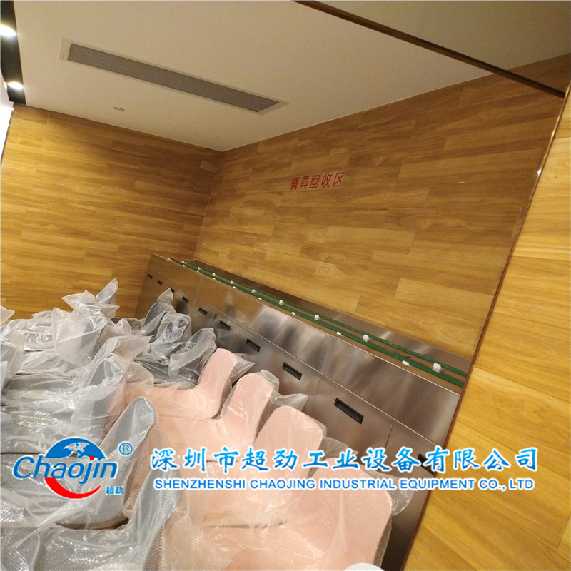 深圳市超劲工业设备有限公司为解决这一问题采取了很多改进措施,专门开发一套餐盘输送设备,具有收集速度快、美观、安全、高效的性能。能在短时间内,将就餐人员的餐具,从餐厅输送到厨房内。输送能力达到600PCS/h,可用于不锈钢餐盘、塑胶餐盘、筷、碗具、勺子等物品的输送。采用全304不锈钢制作,防锈防腐蚀效果明显。