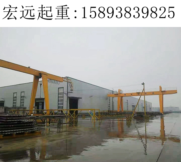 安徽安庆龙门吊出租厂家生产的门式起重机结构分箱型和桁架型,箱型制作方便,桁架自重轻,抗风能力强。整机具有自重轻、结构简单、安装维护方便等特点,适用于中小起重量范围内的厂矿、货场以及仓库等室外场所作一般装卸吊运工作。