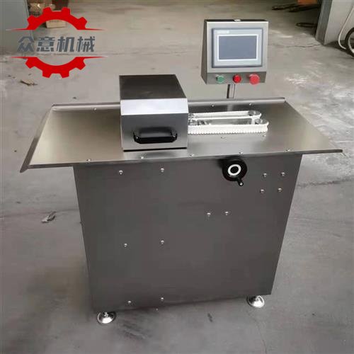 4.扎线机采用不锈钢制造,体积小、效率高、易操作控制系统采用触摸屏和伺服控制系统组成,直观的触摸屏控制面板,能够设置生产速度,扎线圈数、拖肠的时间等参数,还能对生产进行产量统计。