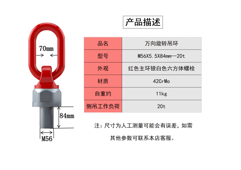 2.旋转吊环可360度旋转,允许180度范围任意方向起吊,螺栓体标注有许用工作载荷;