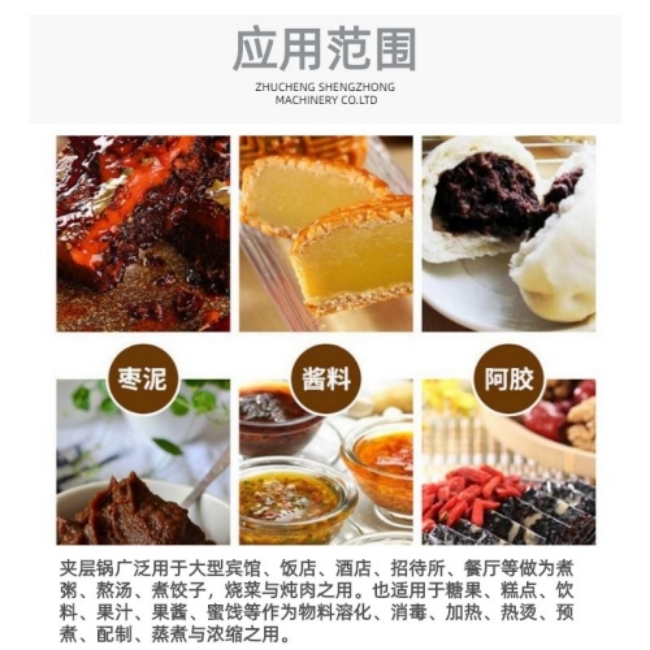 夹层锅广泛应用于各类食品的加工,也可用于大型餐厅或食堂熬汤、炖肉、熬粥等,是食品加工提高质量、缩短时间、改善劳动条件的良好设备。