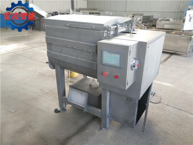 真空搅拌机(食品加工机械厂家Tel:186*1508-5507)在真空的状态下,物料被负压后膨胀同时被桨叶进行径向翻滚、轴向回流,完成混合均匀的搅拌功能达到理想的搅拌效果,同时采用独特的搅拌器,使拌出的肉馅纤维细化,并使肉纤维间的动物蛋白能游离析出,以保证肉馅拌和均匀并使之呈现蓬松状态,加入的调味汁液能充分吸收饱和,以保持馅料的松、鲜、嫩、口感味道优异的特点。