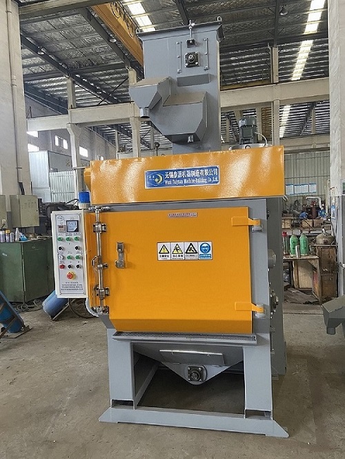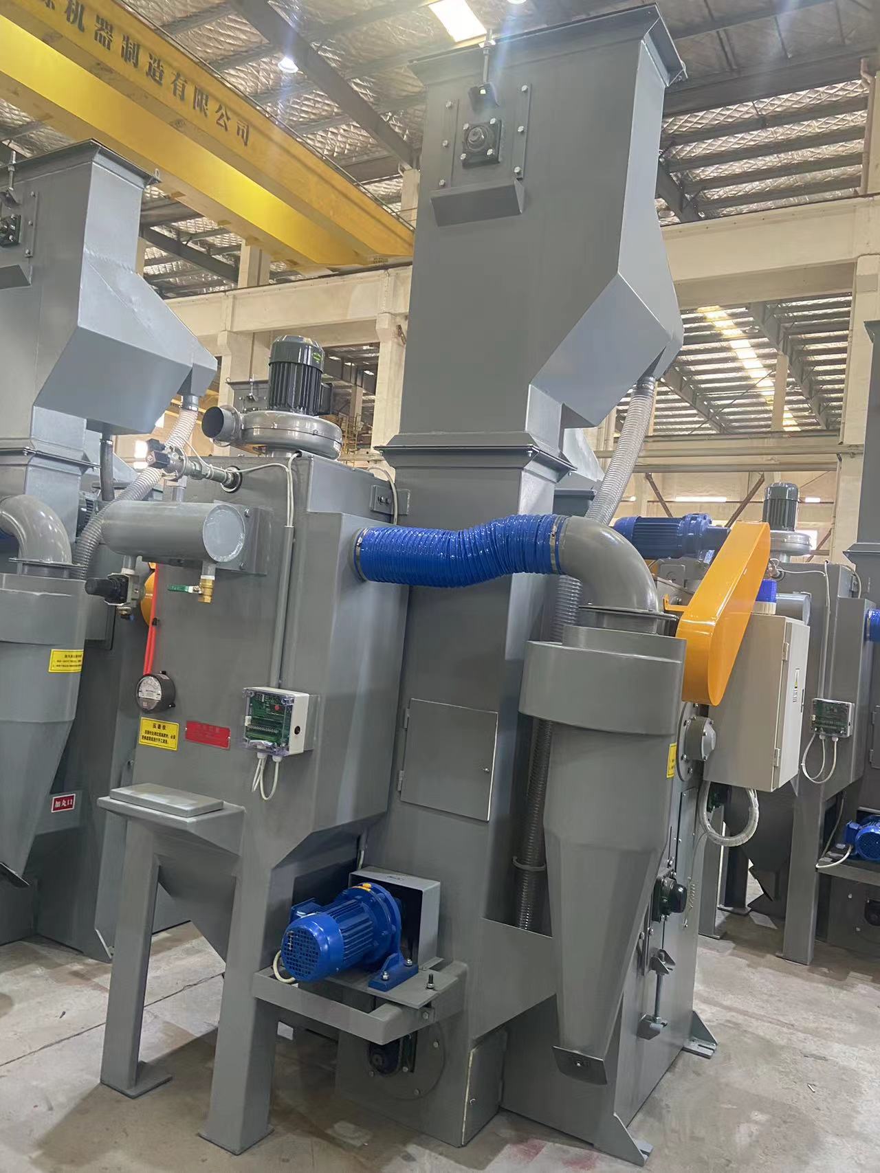 履带式抛丸机工作噪音小,尘埃少,生产速度快,同时弹丸可自动回收利用,耗料少,,是现代企业理想的表面处理设备。