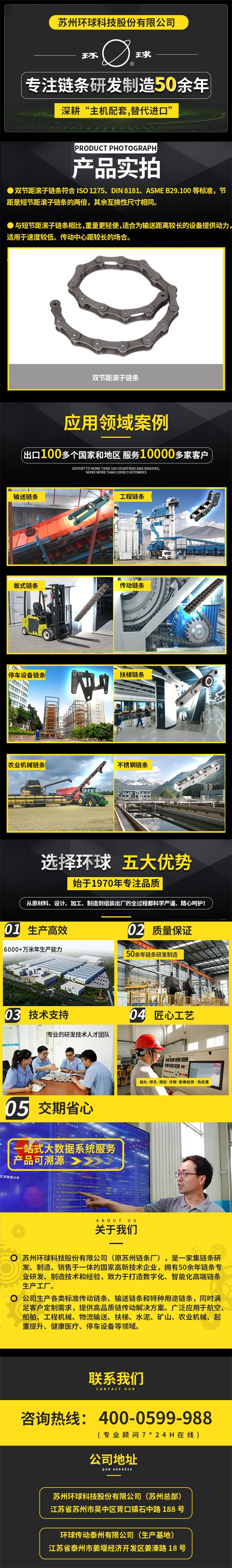 环球传动(原苏州链条厂)始建于1970年,总部位于江苏苏州,生产基地位于江苏泰州,是一家集链条、轴承和智能系统研发、制造、销售于一体的高新技术企业,有着50多年专业链条研发、制造技术和经验,致力于打造数字化、智能化高端链条生产工厂。公司生产各类标准传动链条、输送链条和特种用途链条,同时满足客户定制需求,提供链传动解决方案。广泛应用于工程机械、物流输送、扶梯、水泥、矿山、农业机械、起重提升、停车设备、食品加工、包装机械、环保装备等领域。