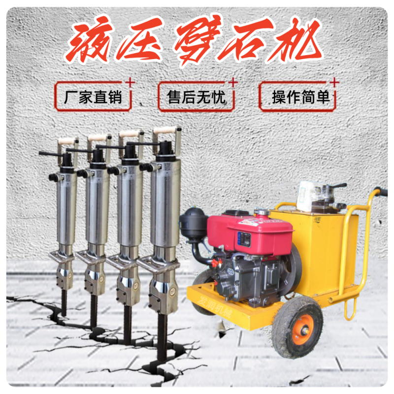 市政基础城市建设中广泛的使用土石方开挖工程:路桥,房屋、地基、钢筋混凝土拆除等工程进的工程:地铁涵洞矿井地下管线河道治理等工程冶炼拆除工程:各种而发润牌开山机冶炼炉,烧窑、耐火砖,碳块的破碎与拆除。 其应用与发展前景,对实体产业与互联网技术的进步,将产生重大的积极意义。岩石液压劈裂机使用很简单,一个工人就能完成全部操作,其结构就是一个高压泵站加上输油管连接的劈裂qiang,使用的时候先在需要的岩石上打一个50到100公分深的孔,然后劈裂qiang,启动机器,大约30到60秒,石块即被裂开一条100公分左右长度,1.5公分宽度的裂缝。机器原理就是利用劈裂中间的楔块伸缩,推动包围楔块的两片劈块往周围张开,从而由内部胀开岩石。