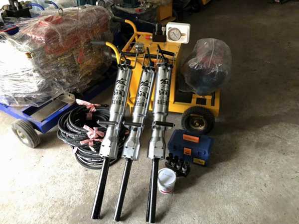 控制静爆器内的活塞杆的推动伸缩,并巧妙的应用了楔器原理,使劈石作用力达到几百吨甚至上千吨,而岩石和混凝土虽然外部抗压强度很大,但是其内部的抗拉强度却相对有限,正是由于彼此的这些特性,所以用静爆器可以在几秒钟内轻易地把巨石劈裂开,使坚硬的矿石从山体中分离。1.检查动力源。电动型劈裂机须检查电源线和电压,柴油机型劈裂机须检查柴机油注入量是否达标。a.电动型一般1.5KW电动机三相电源线,工作电压380V。4KW电动机,工作电压380V。b.柴油机型的柴机油注入量应达到油标*****定位置方可启动。2.检查油管连接。检查油管各连接处是否连接牢固,并理顺油管。1.用风钻在需要破拆的岩石或混凝土上设置劈裂点并钻孔。